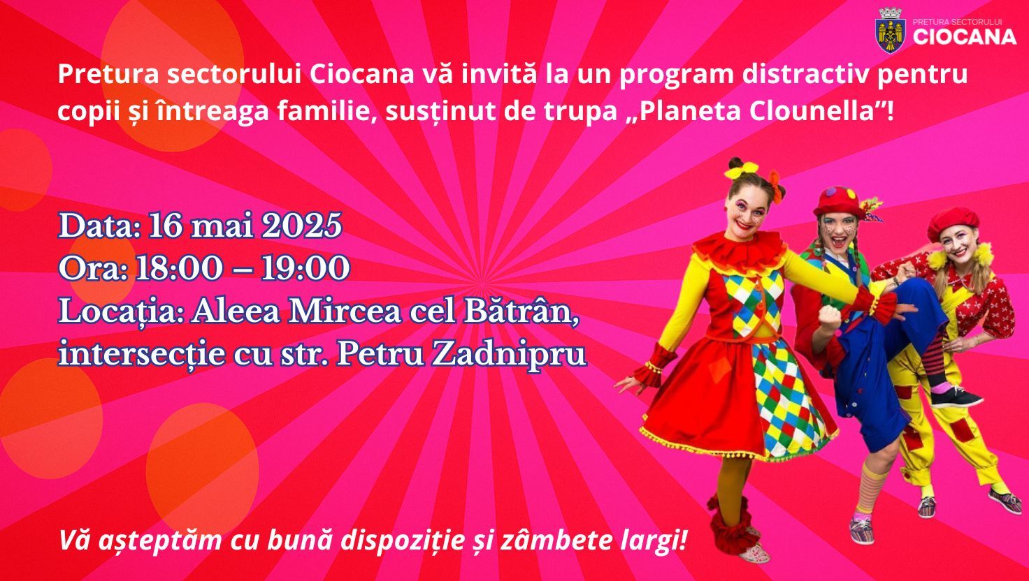 Pretura sectorului Ciocana invită toți locuitorii sectorului la un program distractiv susținut de trupa „Planeta Clounella”