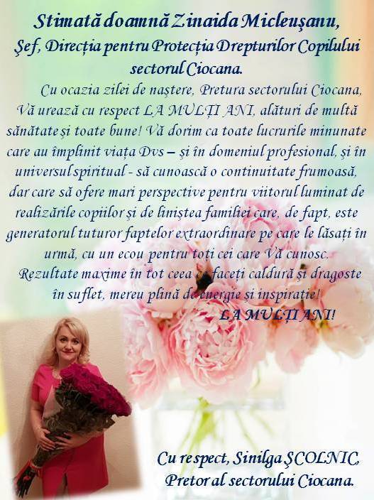 La mulți Ani, Doamna Zinaida Micleușanu!
